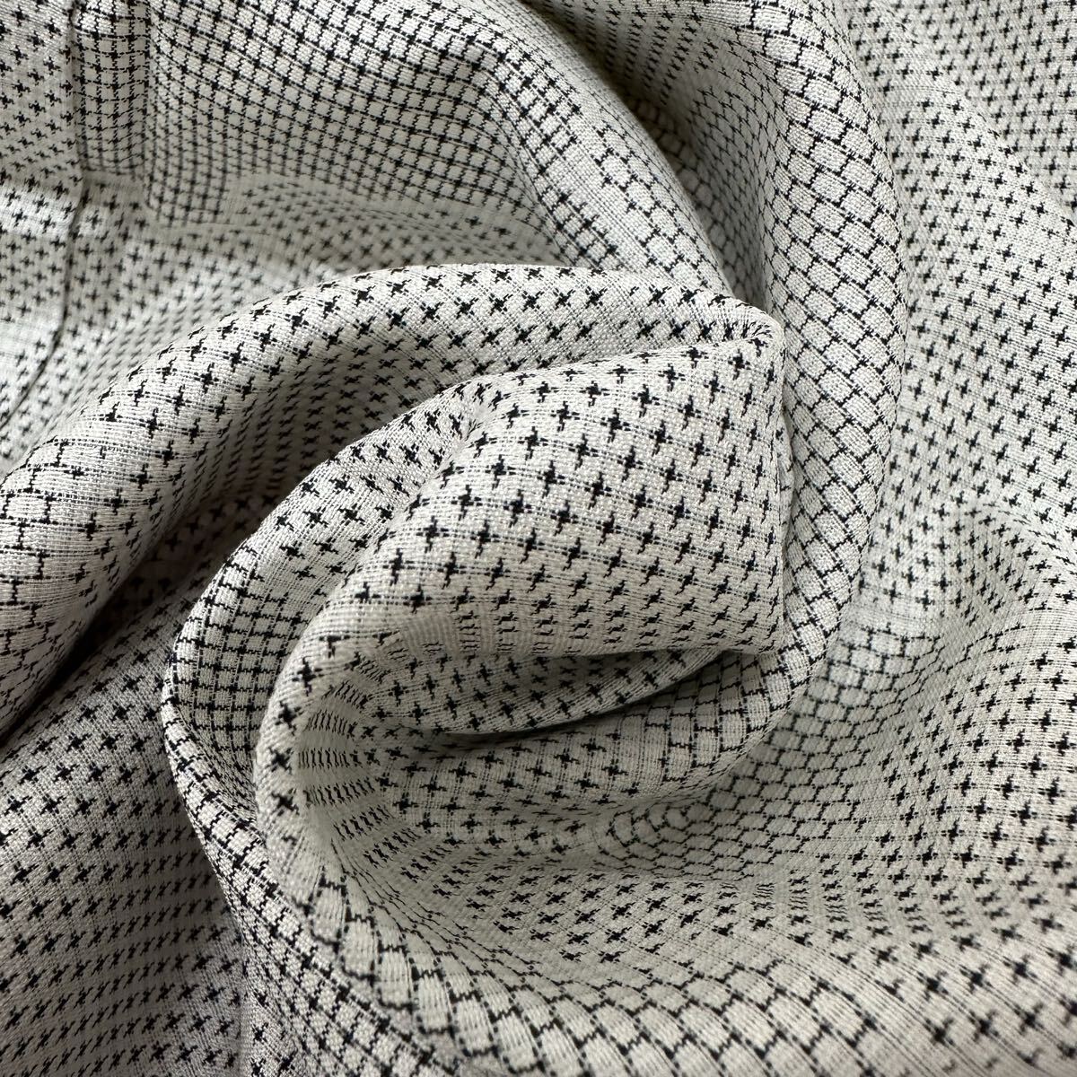 - お召 白地 雲模様 十字絣 着物 正絹 Q-055