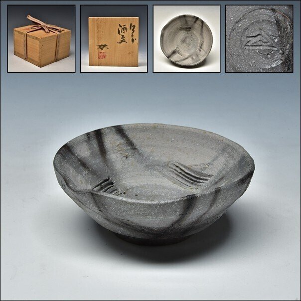 > U08877 最晩年 上作 浦上善次 備前 青備前 酒盃 杯 ぐい呑 酒器 片口 共箱 /G307