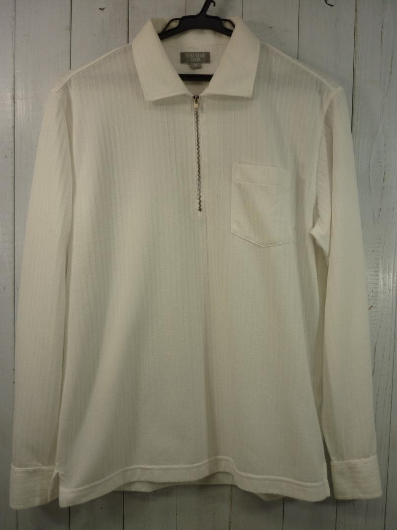 > YUKI TORII HOMME ユキ トリイ メンズ 長袖ジップポロシャツ Mサイズ ホワイト トップス USED 古着 Y20955
