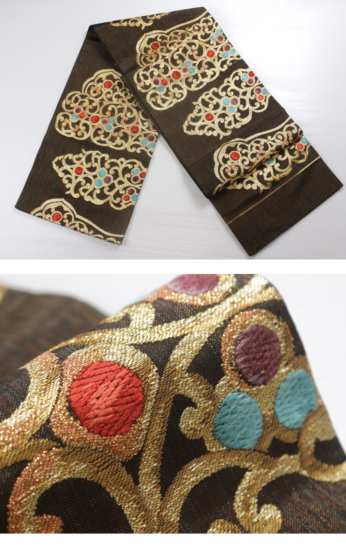 > *未仕立て・未使用* 正絹袋帯『オリエンタル唐草風文』 芯なし e-2663