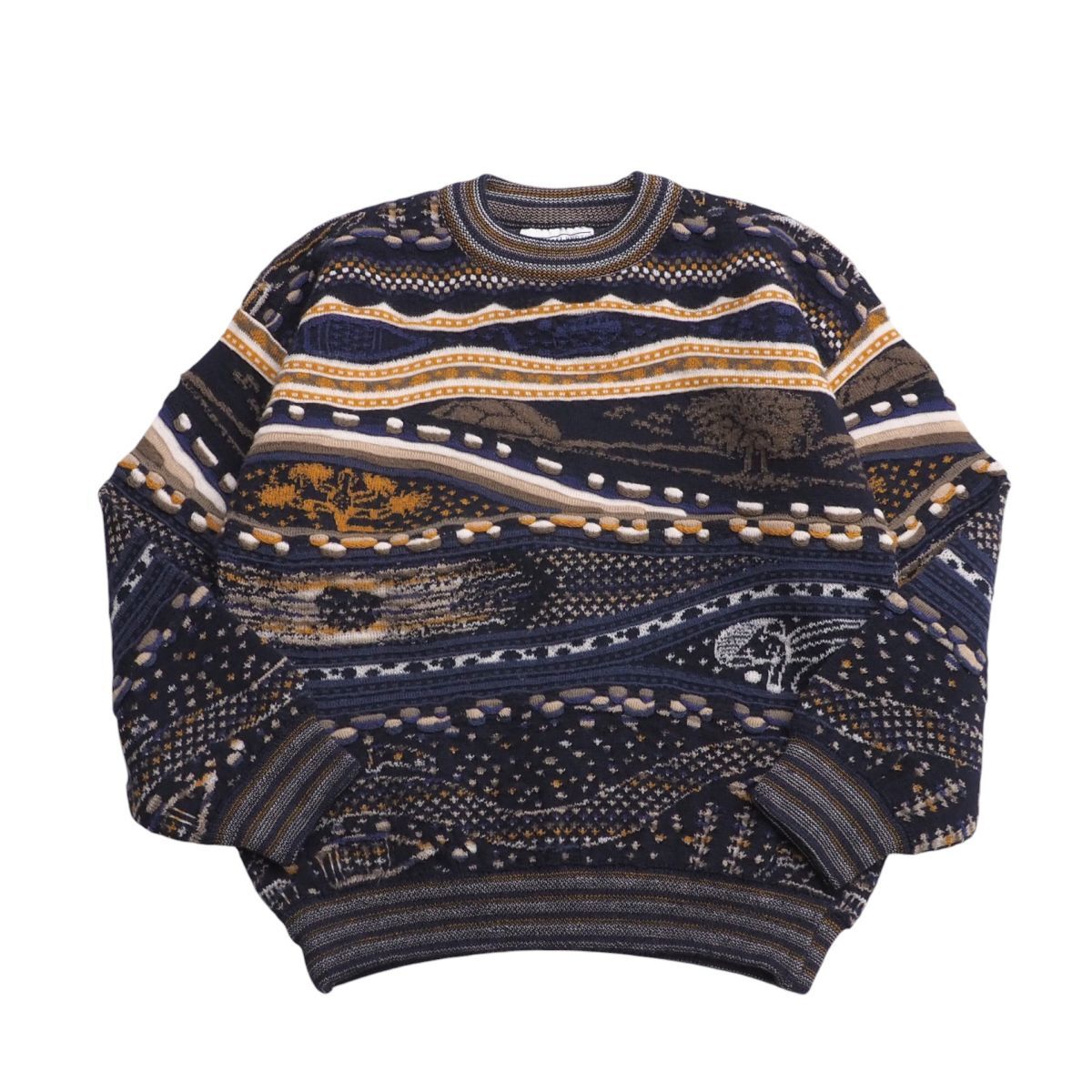 > TI9376+オーストラリア製*CARLO ALBERTO/カルロアルベルト*メンズM*3Dニット*セーター*ボーダー柄/総柄*ウール*マルチカラー