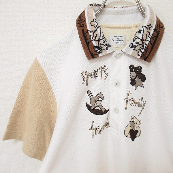 商品名(タイトル):カステルバジャック Castelbajac 半袖 ポロシャツ カットソー 刺繍 メンズ [x866335ss]ブランド名:カステルバジャック(Castelbajac)アイテム名:ポロシャツ カットソーサイズ:1性別:メンズカラー:マルチ素材:画像をご参照ください実寸サイズ:肩幅約 39cm・袖丈約 23cm・着丈約 68cm・胸囲約 48cm×2商品コメント:★当店の商品はすべてリユースアイテムとなります。特質上、些細なダメージは記載しておりませんので着用に問題のない使用感、着古した雰囲気などはご了承くださいませ。コンディションレベル:やや傷や汚れありコンディション備考:前身頃胸付近とうしろ首元ロゴ付近に凝視程度の点シミがございます。(画像7参照) キーワード/アクイール/古着/used/ビンテージ/ヴィンテージ/昭和/レトロ/半袖/ショートスリーブ