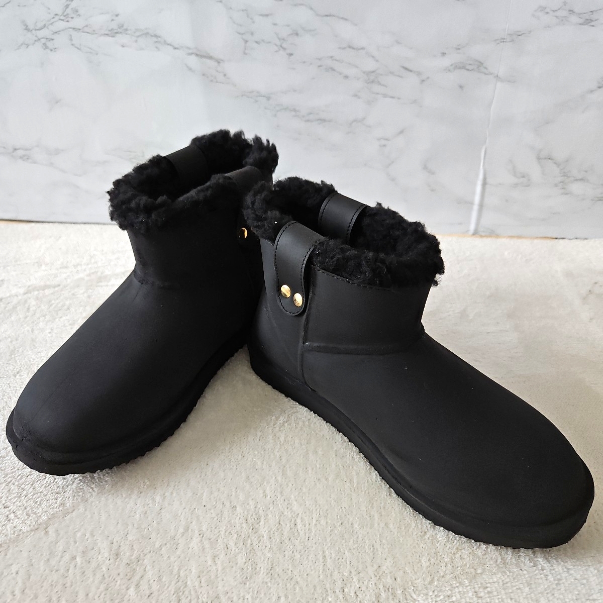 - 【試し履き程度】ルーマニア ショートブーツ ムートン ブラック サイズ38 少しスレあります
