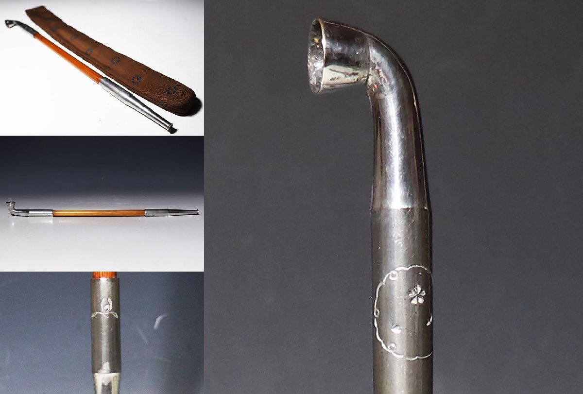 - 【桃】提げ物:金工純銀地雪輪ツクバネ図煙管