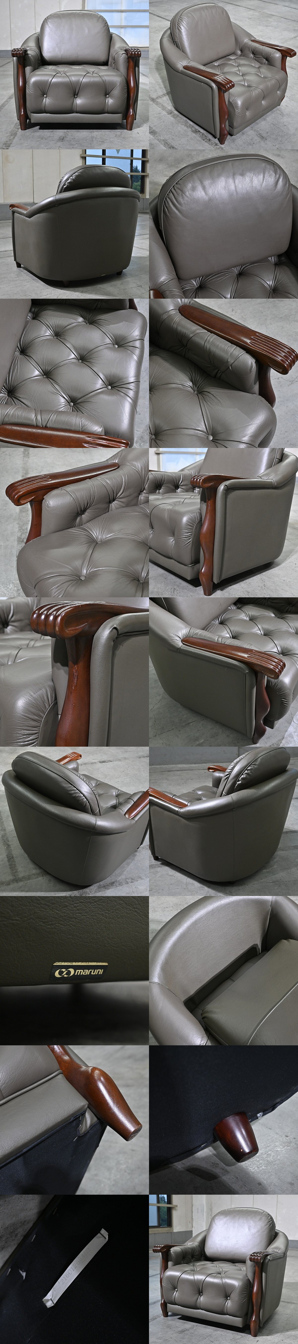 - maruni 21万「ベルサイユ」アームチェア B ビーチ材 ソファ シングル 一人掛け リビング 本革 ラウンジ 待合室 ホテル マルニ木工