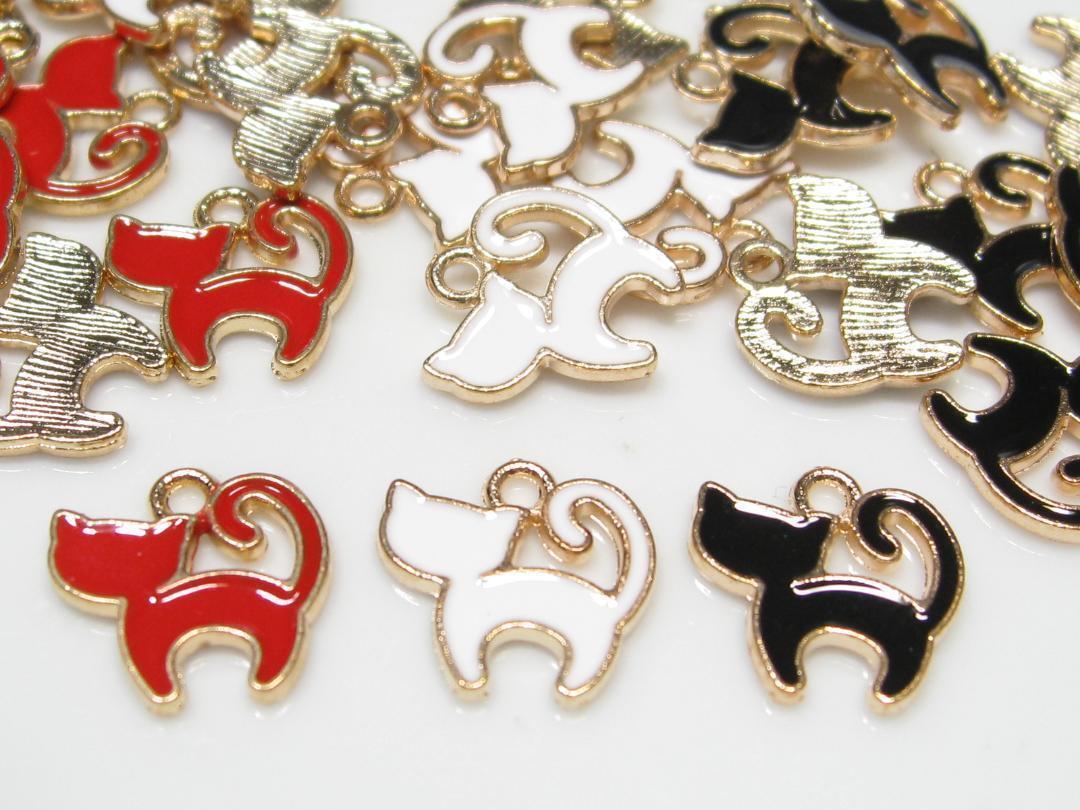 - 猫 チャーム パーツ ネコ 3色×10個 合計30個