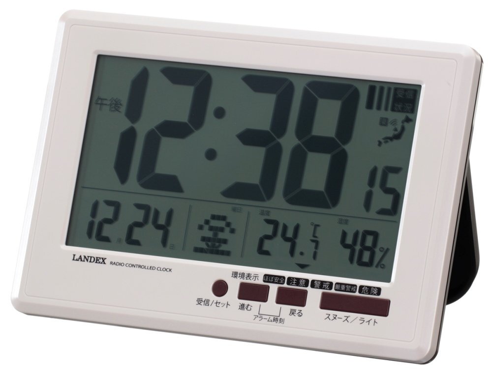 - ランデックス(Landex) 目覚まし時計 電波 デジタル ニュータイムプラザ 環境お知らせ 置き掛け兼用 ホワイト YT5245WH