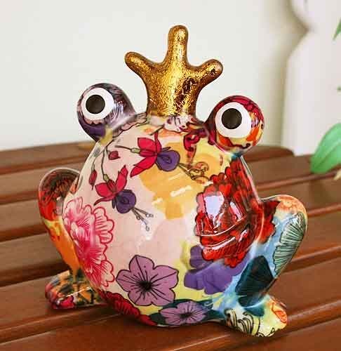 - 輸入雑貨 カエル 蛙 置物 花柄 オブジェ 貯金箱 リビングスタジオ 直輸入 陶器 カラフル コミカル ポップ ユニーク オーナメント 8321