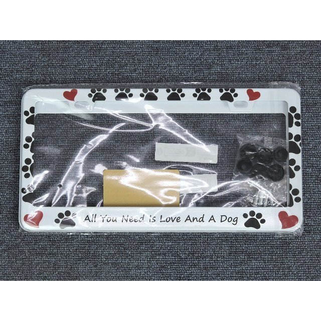 > 【未開封】DZGlobal ナンバープレートフレーム スチールメタル 標準的な米国車用 All You Need is Love and A Dog
