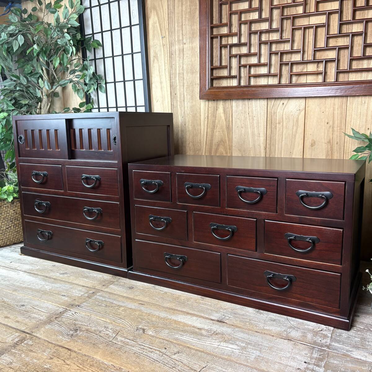 - お買い得品!大セール中!送料無料民芸家具桐多引き出しタンスチェスト二点セット②小物収納箪笥桐材無垢テレビ台飾り棚工具棚、収納家具