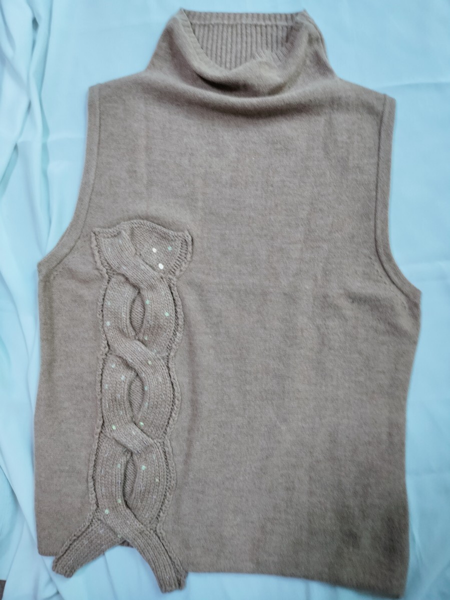 - ウールン商会 イタリー製糸/カシミヤ,ウール ニットベスト,ノースリーブニットセーター 上質 4万円 42サイズL お洒落 185円送 未使