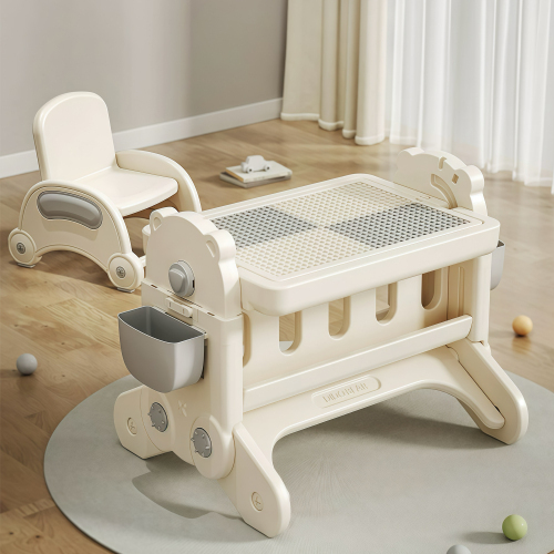 > キッズデスク チェア セット 学習デスクチェア ブロックテーブル ホワイトボード 多機能 キッズテーブル プレゼント 【ホワイト+グ KU795