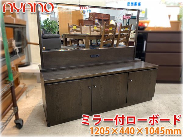- 綾野製作所 ミラー付ローボード E-120MR 1205×440×1045mm 収納棚 ローボード 鏡付 鏡取り外し可 AYANO 家具 店頭引渡し大歓迎 【長野発】