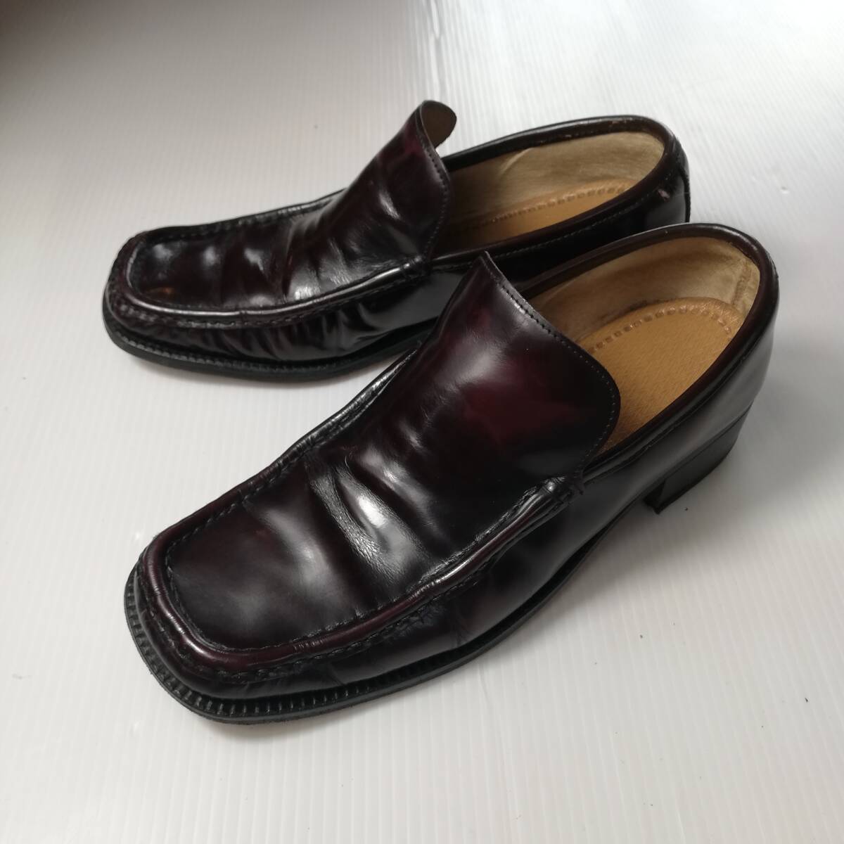 > クリーニング済み イタリア製 革靴 ローファー メンズ 40 25.0cm相当 レザー ダークブラウン ビジネスシューズ フォーマル