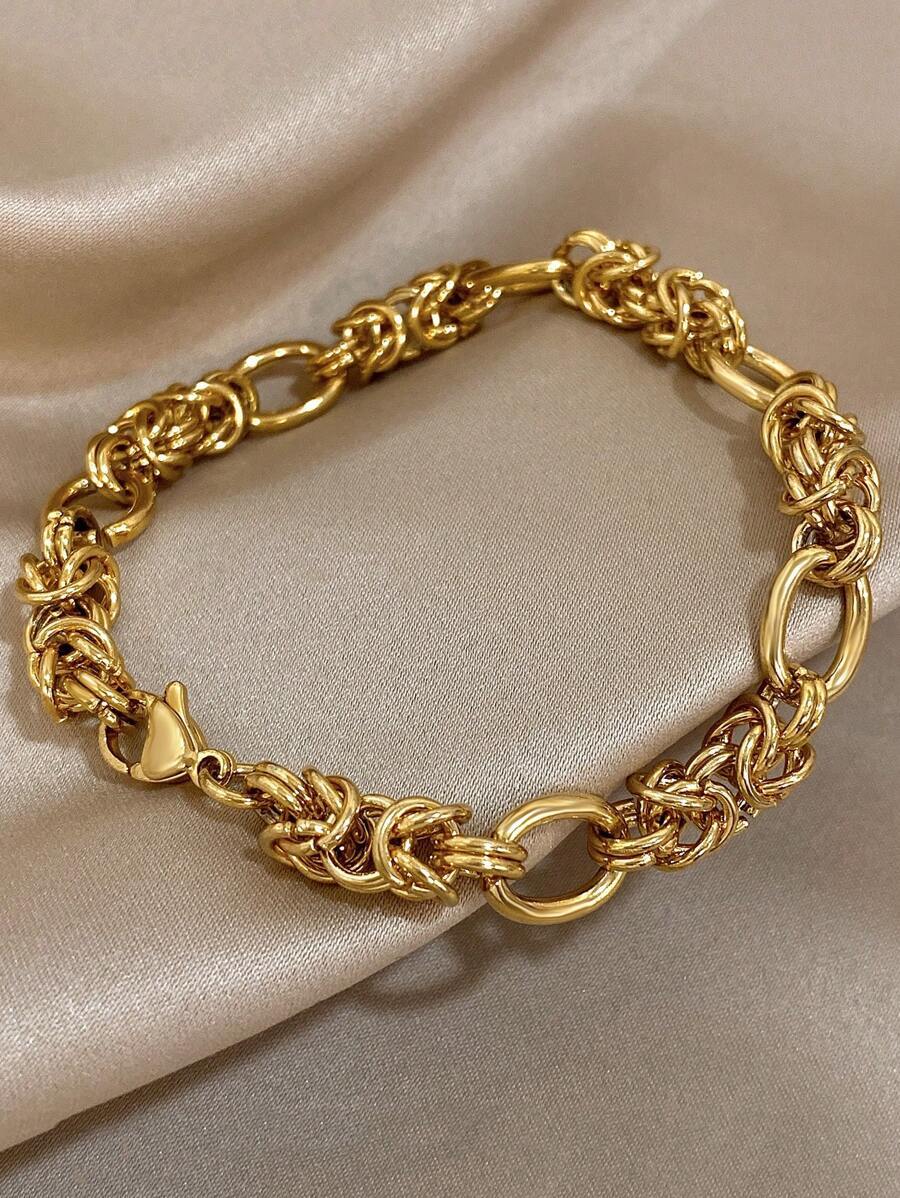 - ジュエリー レディース ブレスレット バングル 1個 丸型 重ね付け マルチレイヤー チェーンブレスレット、変色しにくい 18Kゴ