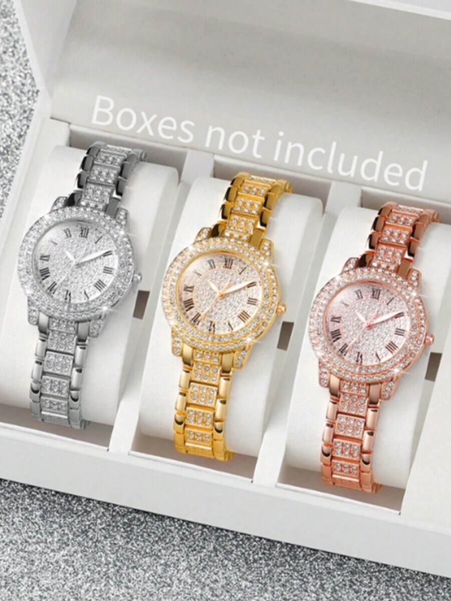 - 腕時計 レディース セット 3個セット レディースファッション ラインストーン装飾ローマンスケール クォーツブレスレット腕時計セッ