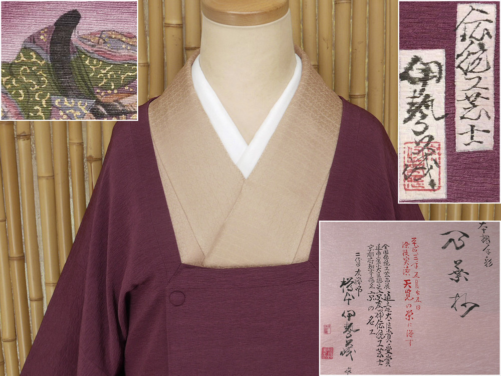 - 【京かんざし】z-11「二代目 樽本伊勢蔵氏」絵羽コート 京友禅伝統工芸士 通商産業大臣認定 躾糸付未着用★即決送料無料!
