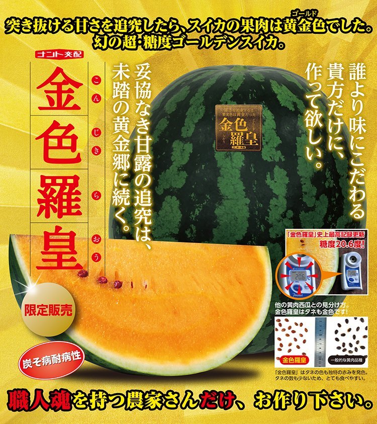 - 送料無料 金色羅皇 超極甘大玉スイカ 3粒