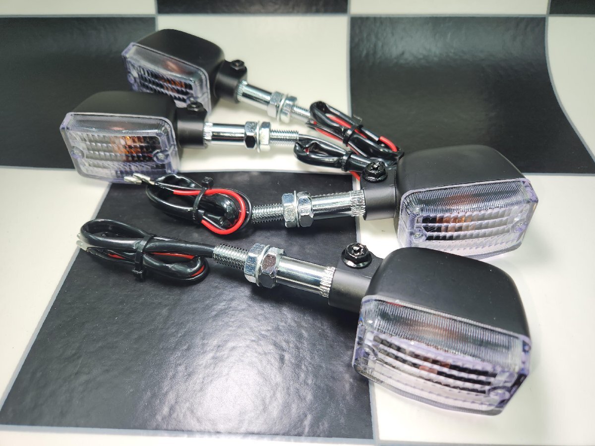 - BMWタイプ 角型 ヨーロピアン ウィンカー 新品 ステーバルブ付 クリアレンズ 4個set 当時旧車 CGC キジマ リード ヨンフォア バブ ザリ ゴ