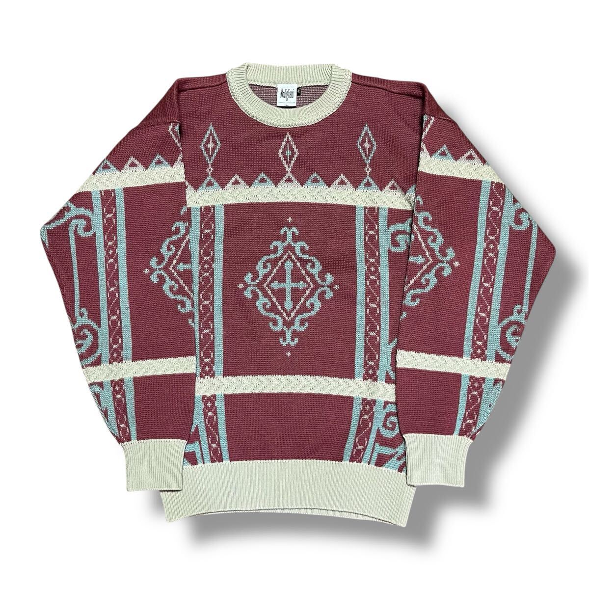 - modigliani イタリア製 90s 総柄ニット デッドストック品 値引可 昭和レトロ ヴィンテージ 総柄セーター ビンテージ 当時物 小杉産業