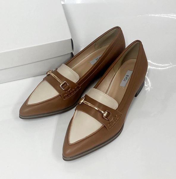 - 未使用/22.5cm/EVOL(イーボル)ビット ポインテッドトゥ パンプス/ブラウン×アイボリー(管e0716)