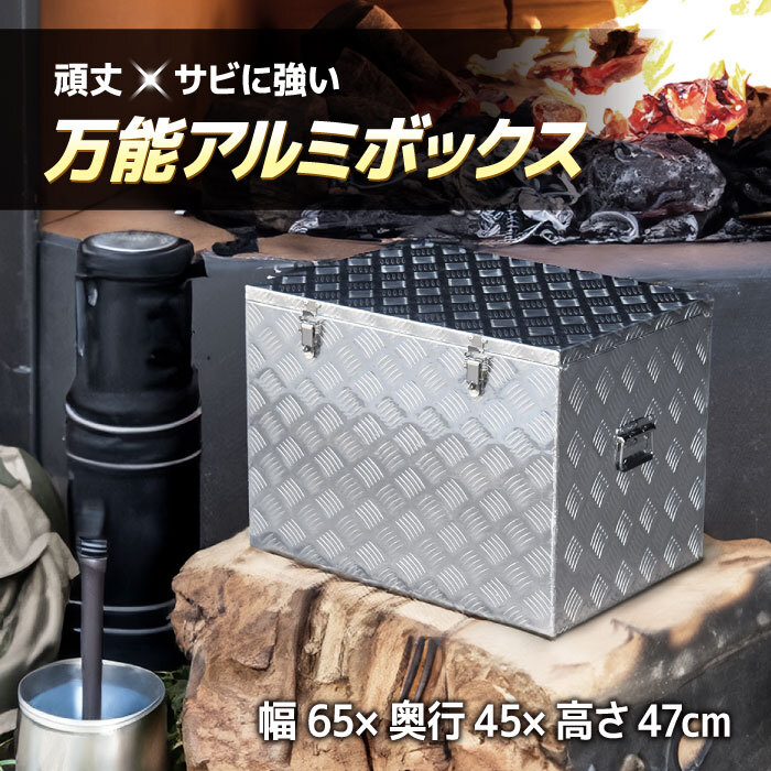 > 万能アルミボックス TOOL BOX 工具箱 ツールボックス 収納 650×450×470mm 長丁番 取っ手付き アルミ製 縞板 サビに強い 南京錠 運搬