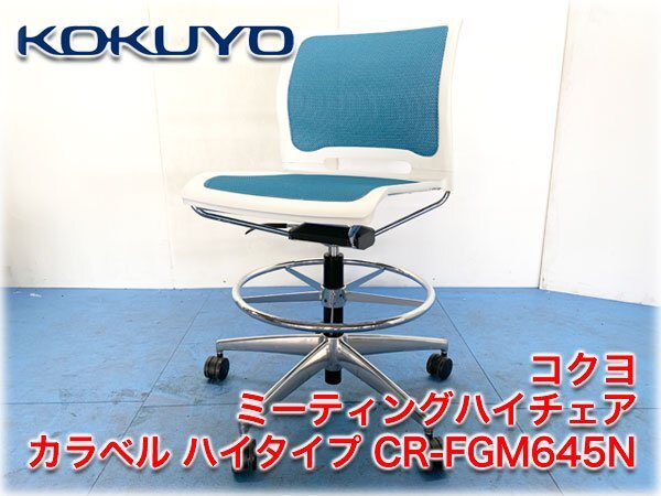 > コクヨ ミーティングハイチェア カラベル ハイタイプ CR-FGM645N ホワイトフレーム×ターコイズ色 背メッシュタイプ【長野発】
