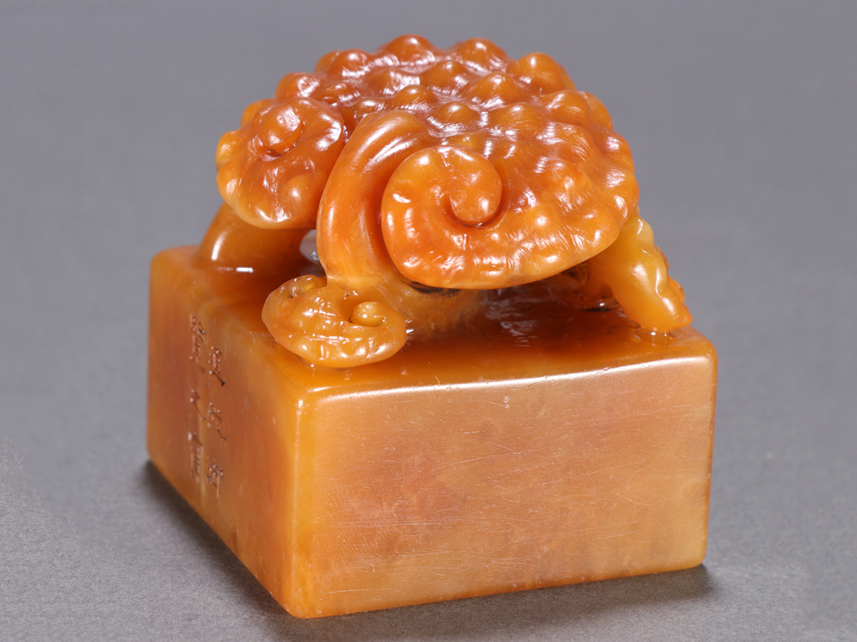 - ▽鴻▽清時代 道光元年務府造弁処監製 寿山田黄石彫 霊芝鈕御璽印章 印鑑 共箱 時代物 中国古美術 骨董品