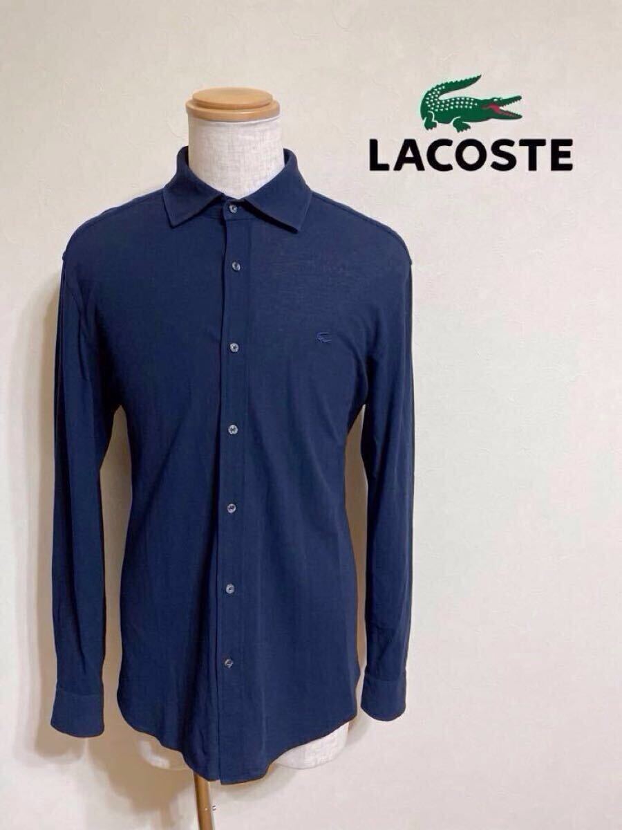 - LACOSTE ラコステ 鹿の子 シャツ トップス 薄手 リアルワニ トップス サイズ5 ネイビー 長袖 ファブリカ KH041C
