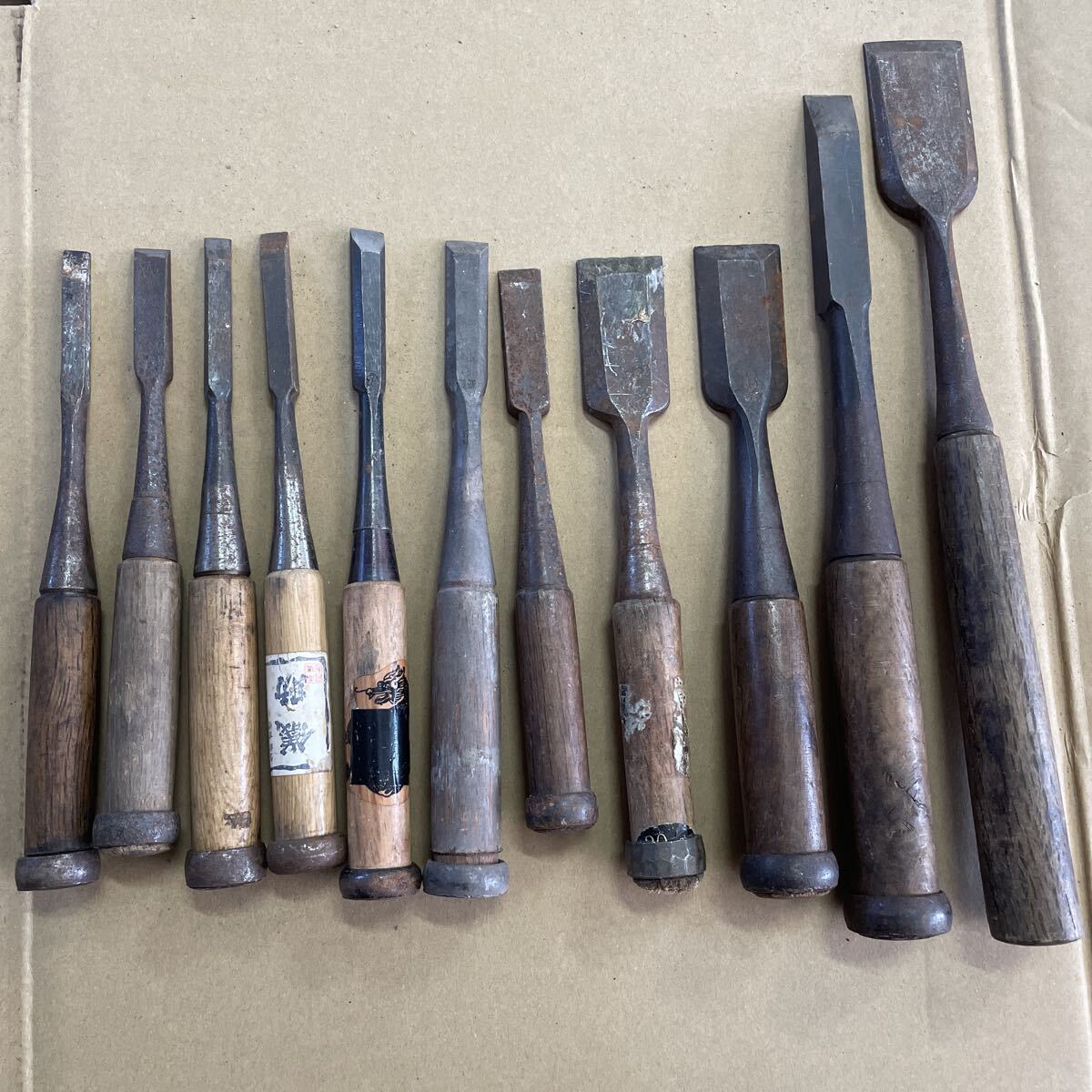 - ⑦-75 鑿 ノミ 11本セット 大工道具 古道具 職人 ハンドツール 木道具 DIY アンティーク 木彫り