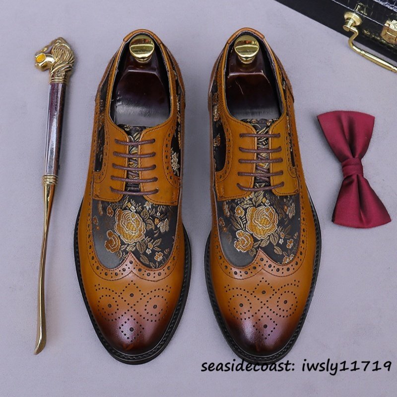 - 定価11万■最高級 ビジネスシューズ メンズ 刺繍 本革 レザーシューズ 職人手作り 紳士靴 革靴 牛革 男女兼用 フォーマル ブラウン 25.0cm