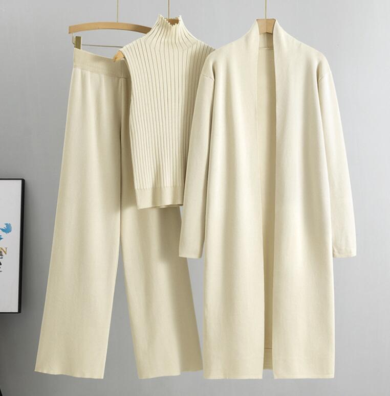 - M1015 パンツスーツレディース● 着心地抜群 20代30代40代 ● ニット素材 秋冬 3点セット アイボリー
