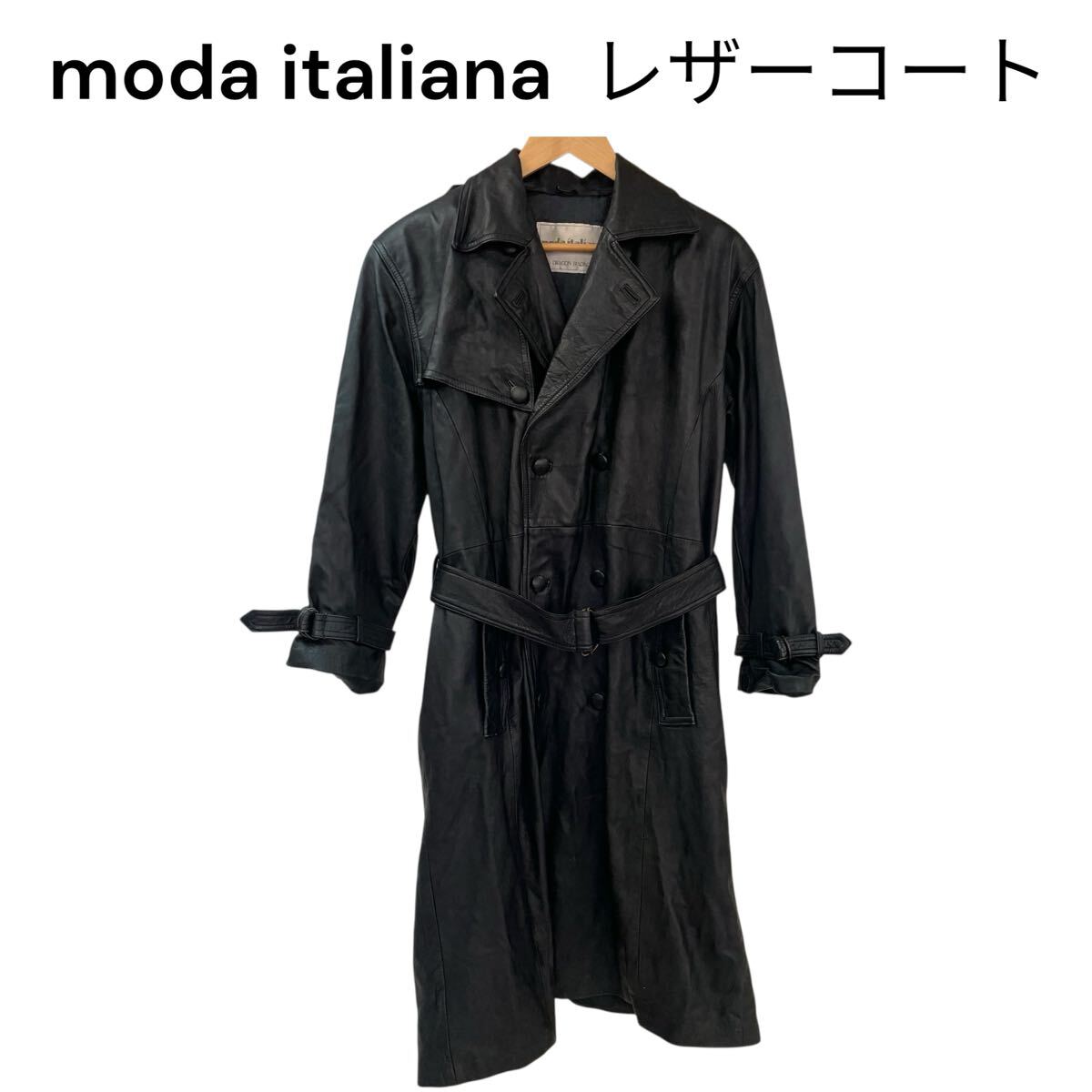 - モダイタリアーナ レザーコート 羊革 本革 トレンチコート M ブラック moda italiana #0691-001R6
