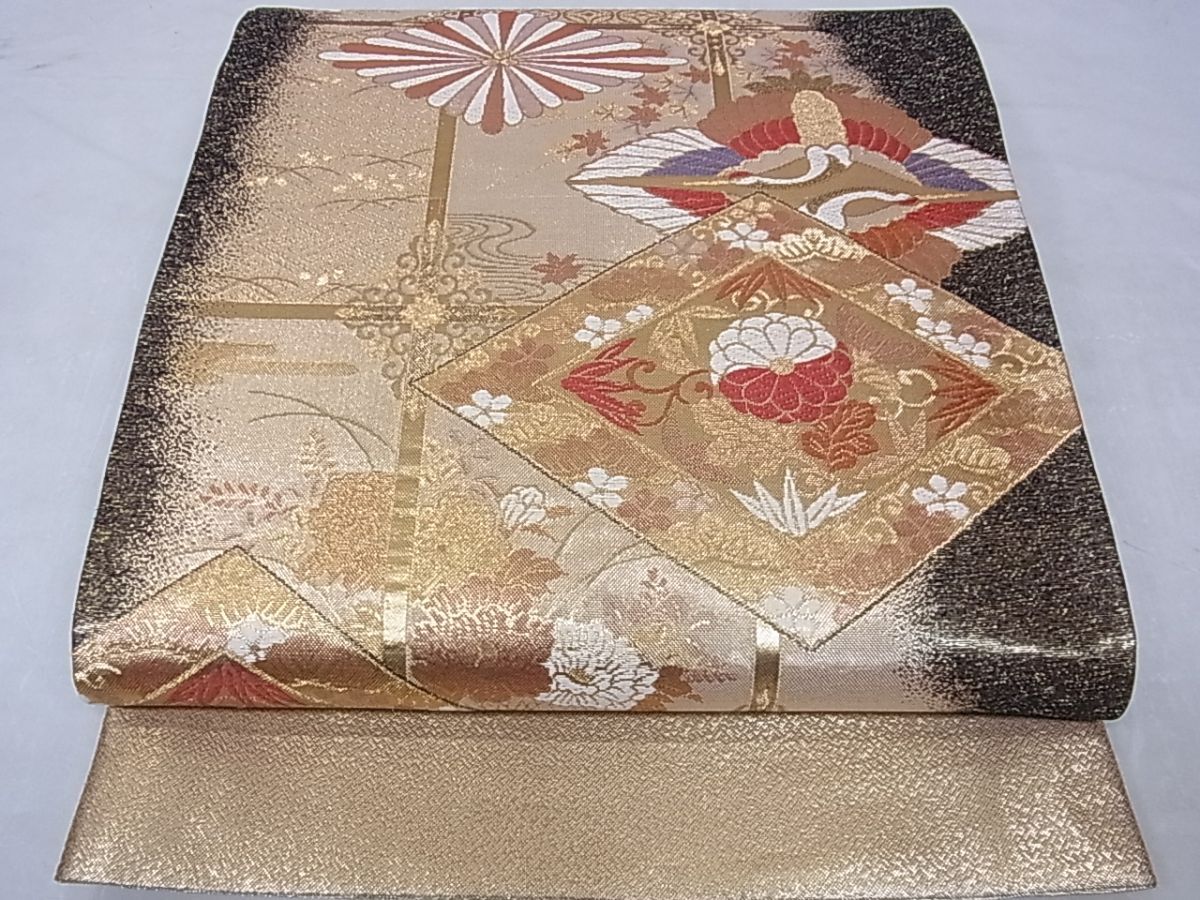 - eふれんず◆佐賀錦 六通柄袋帯 向かい鳥花菱文 金糸 正絹 美品◆bm1863