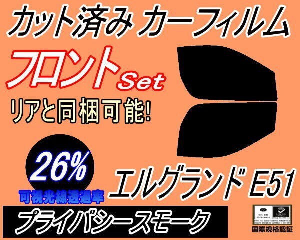 - カーフィルム プライバシースモーク カット済み フロントセット エルグランド E51 (b) E51系 NE51 ME51 MNE51 E51 ガラスフィルム
