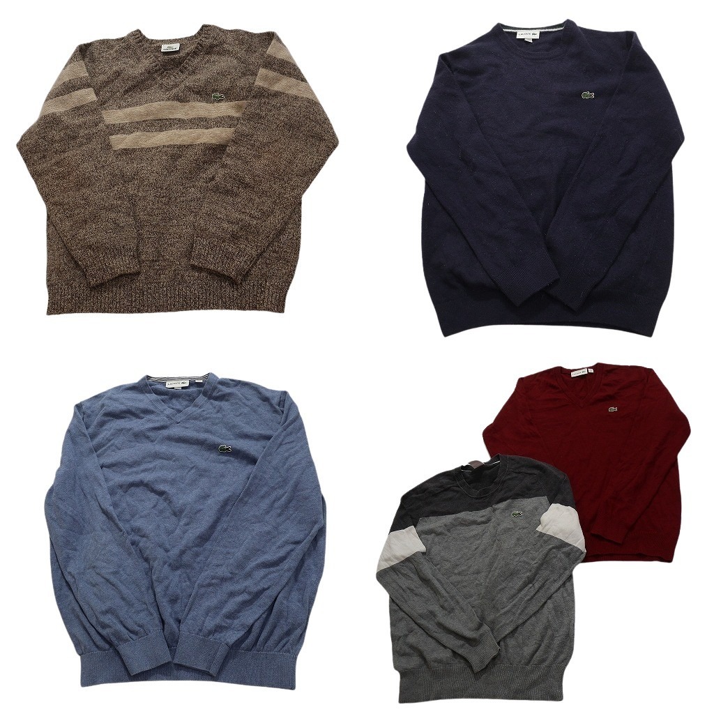 > 古着卸 まとめ売り ラコステ セーター 5枚セット (メンズ M /L ) ライン Vネック ネイビー ライトブルー 中古 古着 NC3262