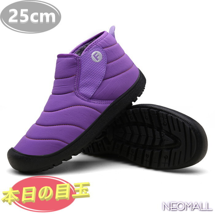 > ユニセックス スノーシューズ 【869】 25.0cm パープル ムートンブーツ スニーカー ウィンターブーツ 裏起毛 防水 防寒 防滑 冬用靴 綿靴