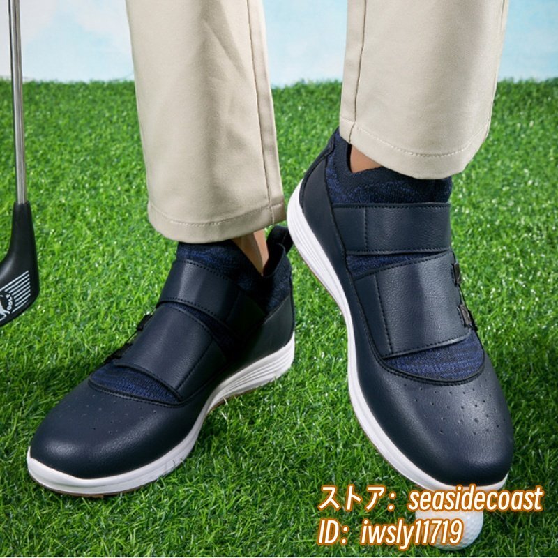 > 高級品 ゴルフシューズ 強いグリップ 新品ダイヤル式 運動靴 フィット感 軽量スポーツシューズ 弾力性 通気性 防滑 ネイビー 26.0cm