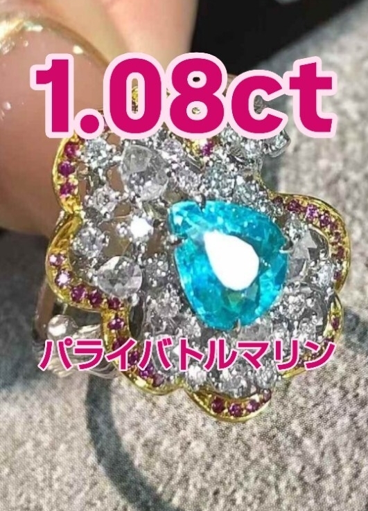 - 1.08ct 個性的なパライバトルマリン 18Kリング 「夢幻の青—— パライバが紡ぐ、唯一無二のスタイル。」新品未使用