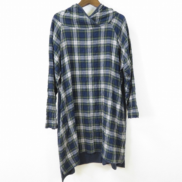 > #a パスアパス pas a pas チュニック 紺系 緑系 マルチ チェック柄 長袖 天然素材 ナチュラル服 コットン 日本製 レディース [972569] k01