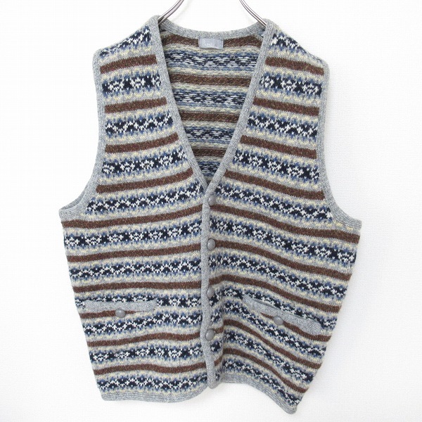 ◎商品名(タイトル):パパス Papas ニット ベスト フェアアイル くるみボタン メンズ [w969713ss]◎ブランド名:パパス (Papas)◎アイテム名:ニット ベスト◎サイズ:-◎性別:メンズ◎カラー:マルチ◎素材:画像をご参照ください◎実寸サイズ:肩幅約 38cm・着丈約 62cm・胸囲約 55cm×2◎商品コメント:★当店の商品はすべてリユースアイテムとなります。特質上、些細なダメージは記載しておりませんので着用に問題のない使用感、着古した雰囲気などはご了承くださいませ。◎コンディションレベル:やや傷や汚れあり◎コンディション備考:各所に薄い汚れ、素材タグに記名がございます。(画像3,5参照)キーワード/アクイール/古着/used/ビンテージ/ヴィンテージ/昭和/レトロ/ビービーケーケー/カーディガン/ジレ