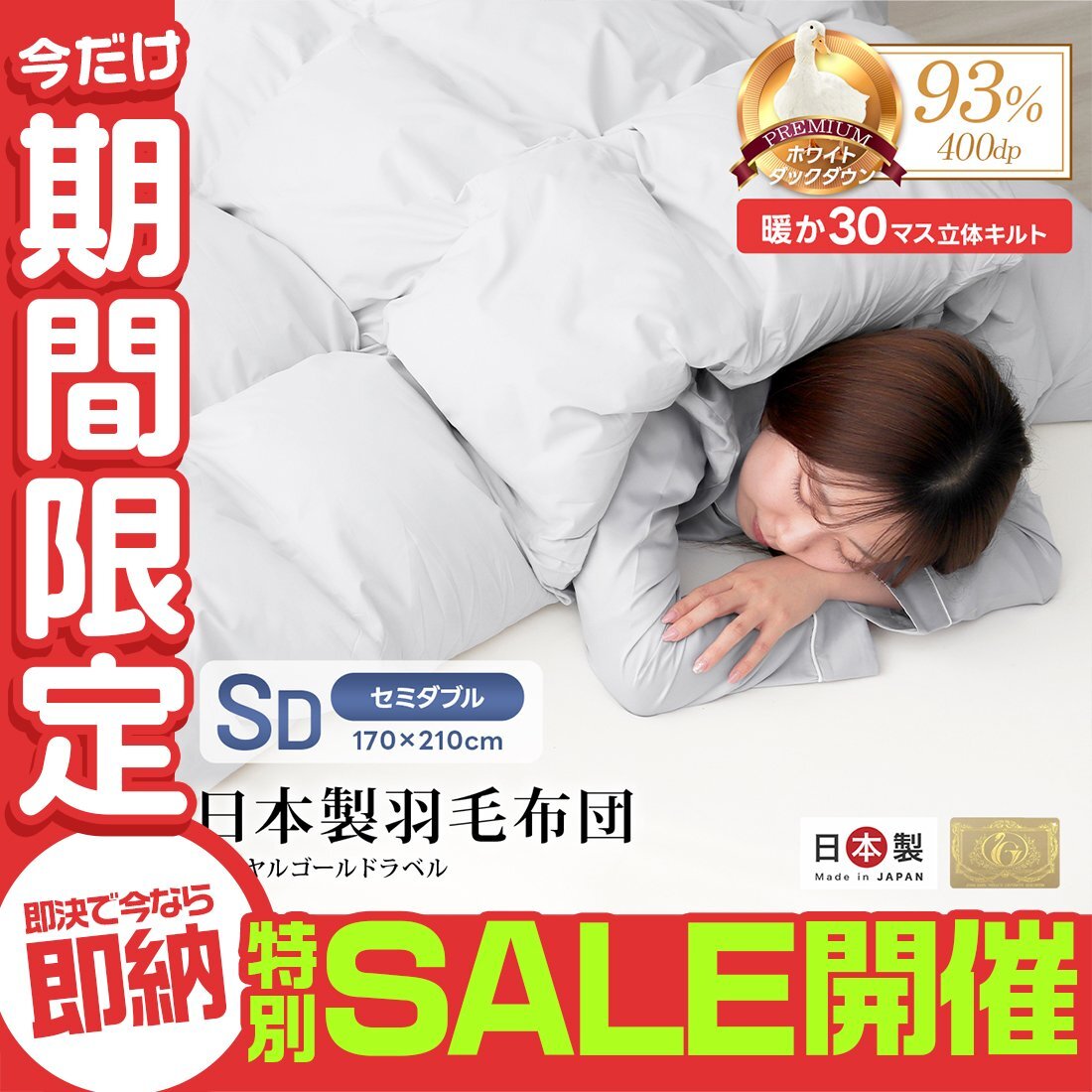 - 【数量限定セール】羽毛布団 掛け布団 セミダブル 冬 暖かい 日本製 ホワイトダックダウン93% ロイヤルゴールド 抗菌 防臭 防ダニ 掛布団