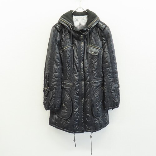 ◎商品名(タイトル):GKITALIYA 伊太利屋 イタリヤ アウター コート ナイロン レース ベルト [x968093]◎ブランド名:GKITALIYA 伊太利屋◎アイテム名:アウター コート◎サイズ:11◎性別:レディース◎カラー:黒系◎素材:画像をご参照ください◎実寸サイズ:肩幅約 38cm・袖丈約 59cm・着丈約 77cm・胸囲約 48cm×2◎商品コメント:★当店の商品はすべてリユースアイテムとなります。特質上、些細なダメージは記載しておりませんので着用に問題のない使用感、着古した雰囲気などはご了承くださいませ。◎コンディションレベル:やや傷や汚れあり◎コンディション備考:左下ポケットのファスナー持ち手部分が取れています。ベルト部分にややベタつきと、ベルト金具部分に傷がございます(画像7.8.9参照)キーワード/アクイール/古着/used/ビンテージ/ヴィンテージ/レトロ/昭和/株式会社レリアン/ブラック系/膝丈/プルアウトフード/プルアウトフード付き/ナイロンコート/ナイロンジャケット