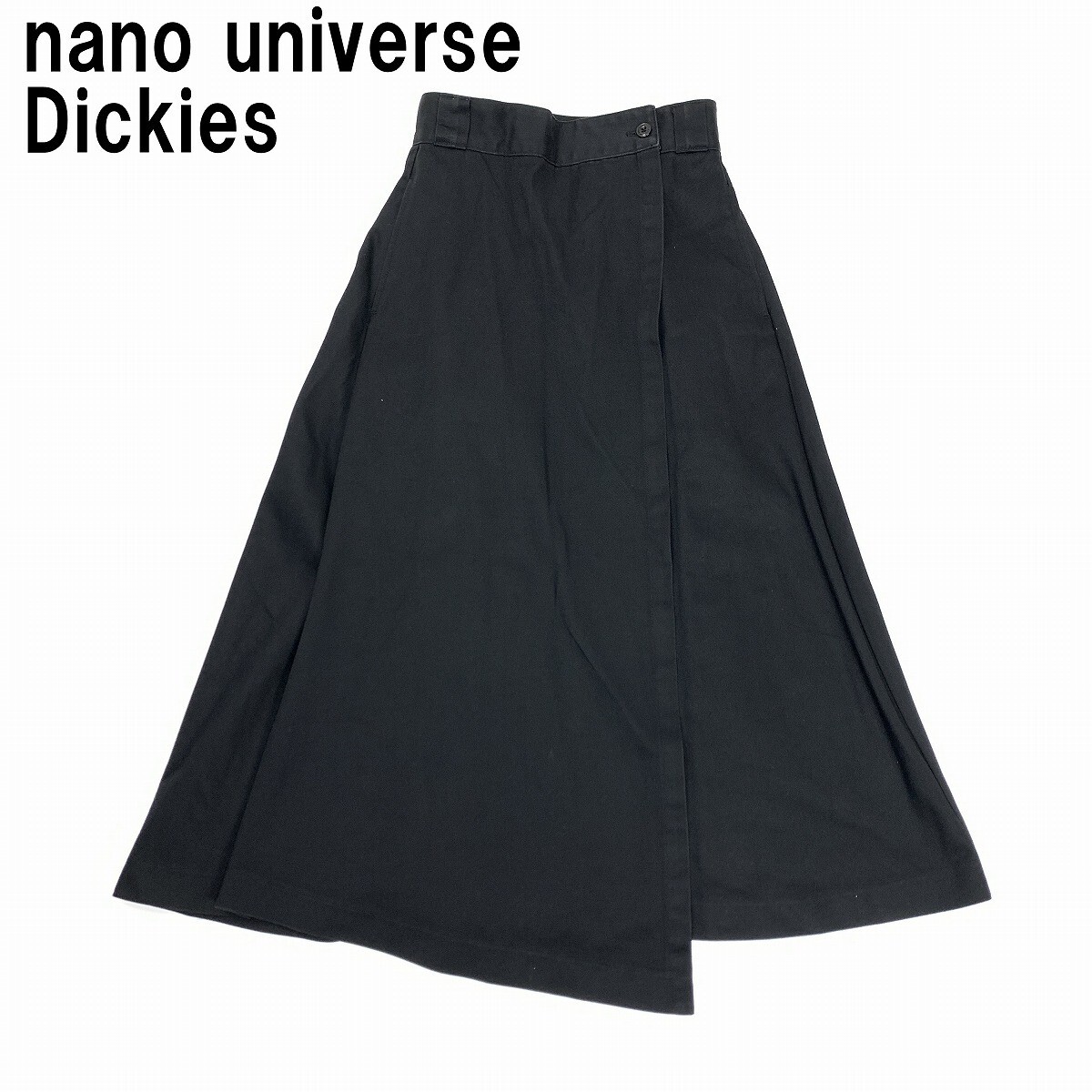 - nano universe ナノユニバース Dickies ディッキーズ ロングスカート 綿 コットン 巻きスカート 黒 ブラック S YC1224