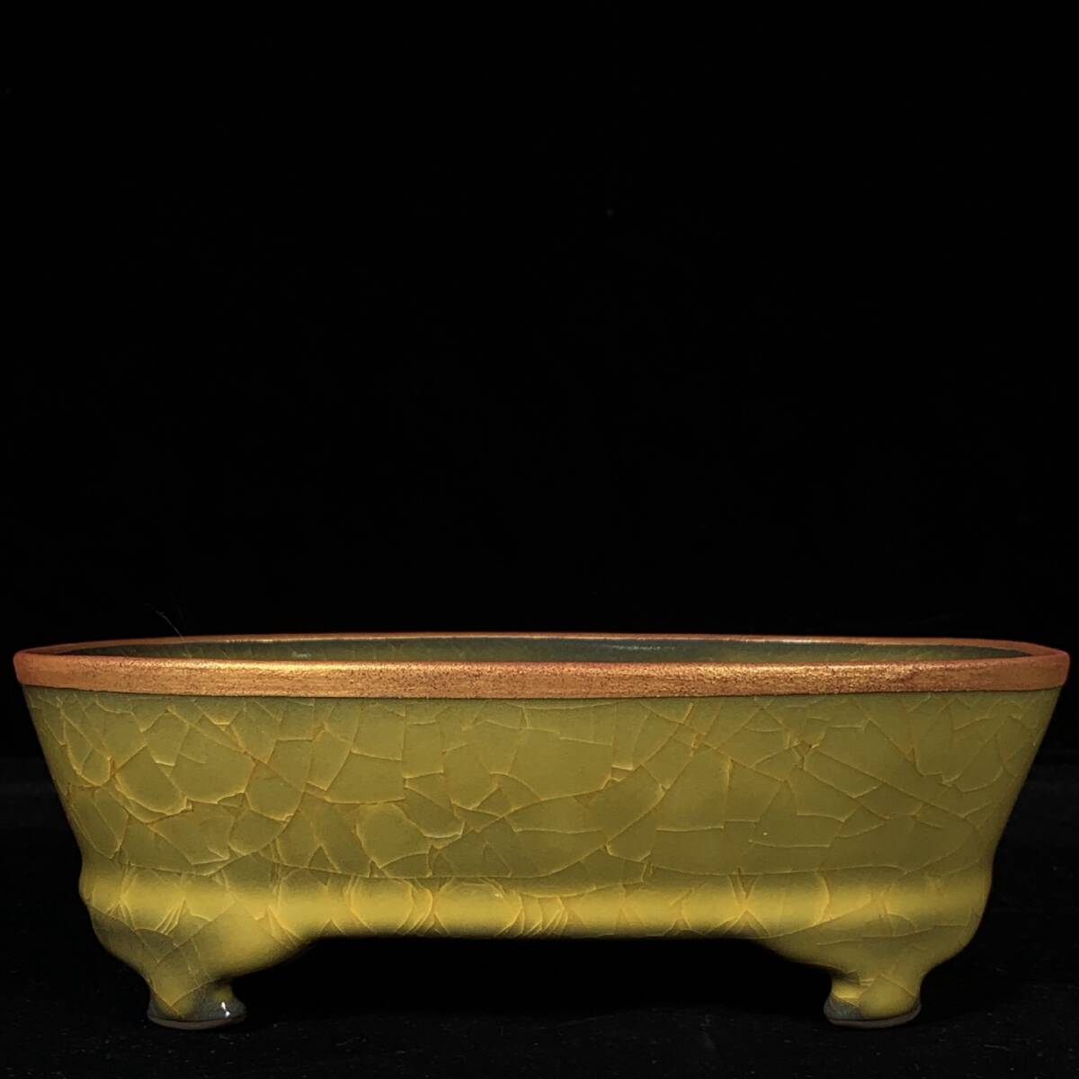 - ◆珍蔵◆中国古美術 宋時代 官窯 包金口 冰裂紋 古陶磁 龍紋水仙盆 細密細工造 置物 古賞物 骨董品 時代物 A17
