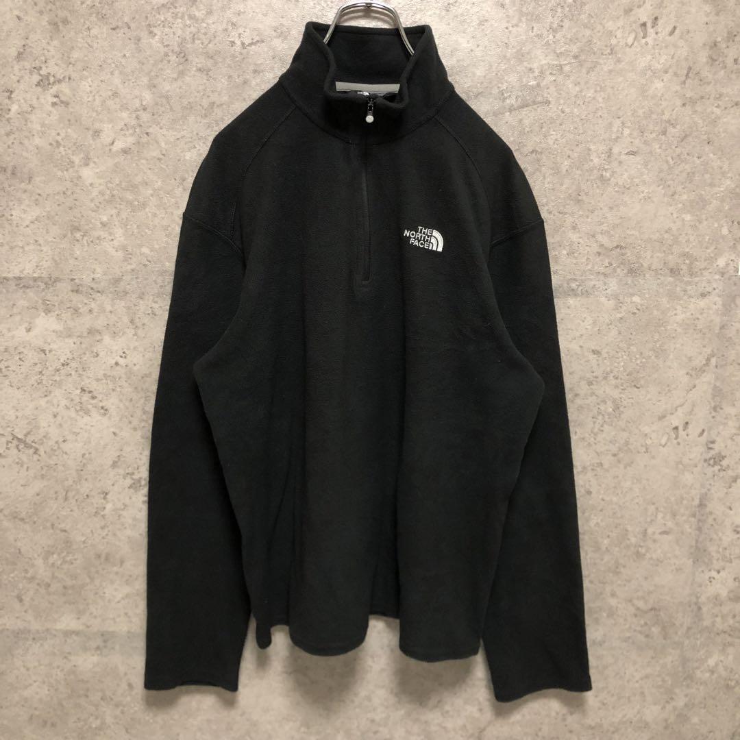 - Mサイズ ノースフェイス ハーフジップ フリース 刺繍ロゴ 黒 ブラック