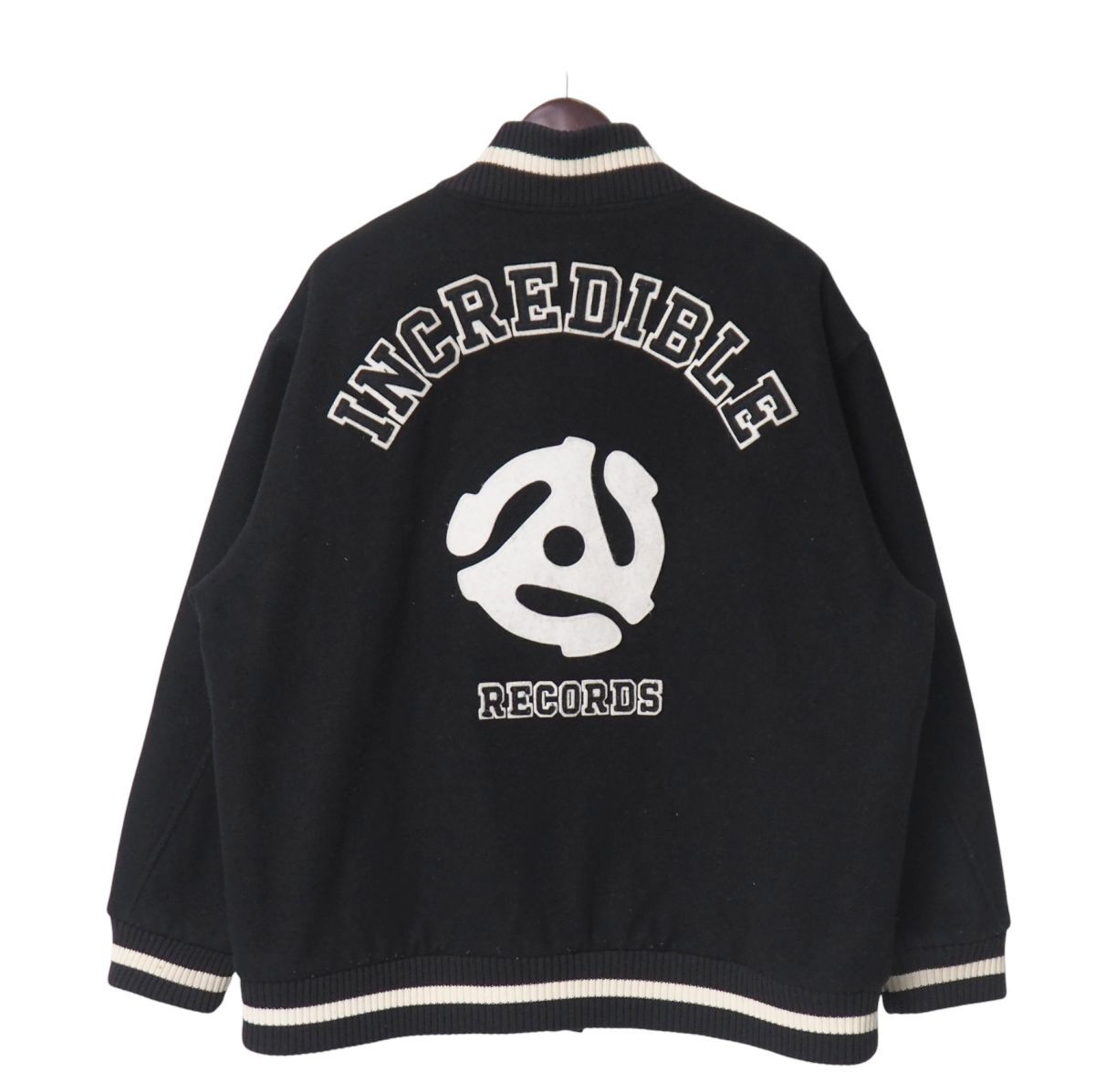 - TJ5379◎incredible インクレディブル バックロゴ ワッペン ソフトメルトン キルティング スタジャン アワードジャケット サイズXL 黒