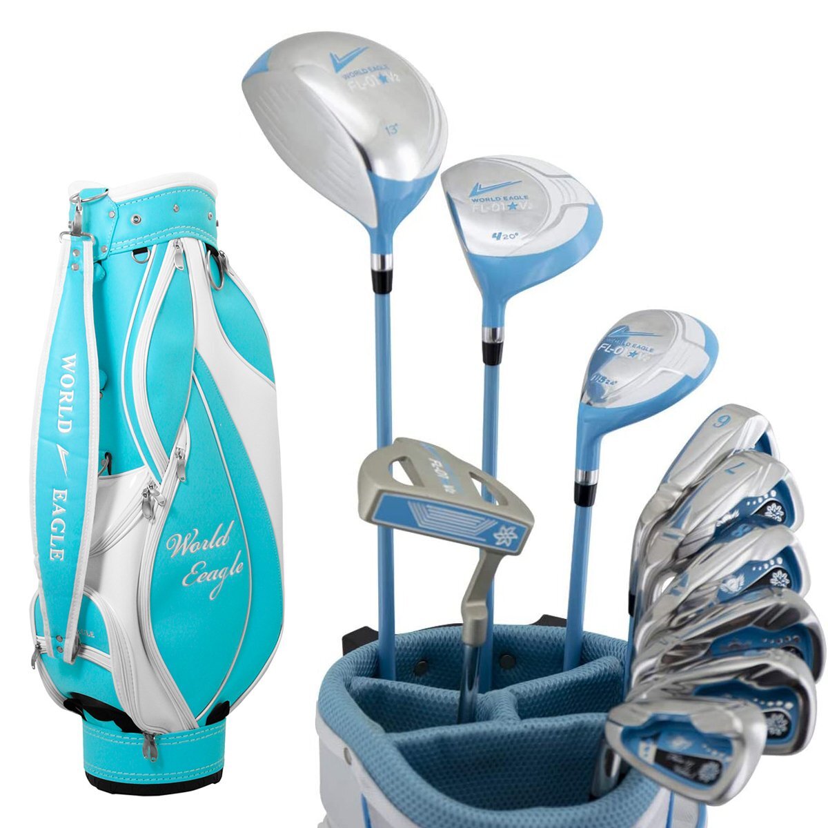 > FL-01★V2レディースゴルフクラブセット 高級志向キャディバッグ付 【アクアブルーバッグ】【アクアブルークラブ】左利き用[36658]