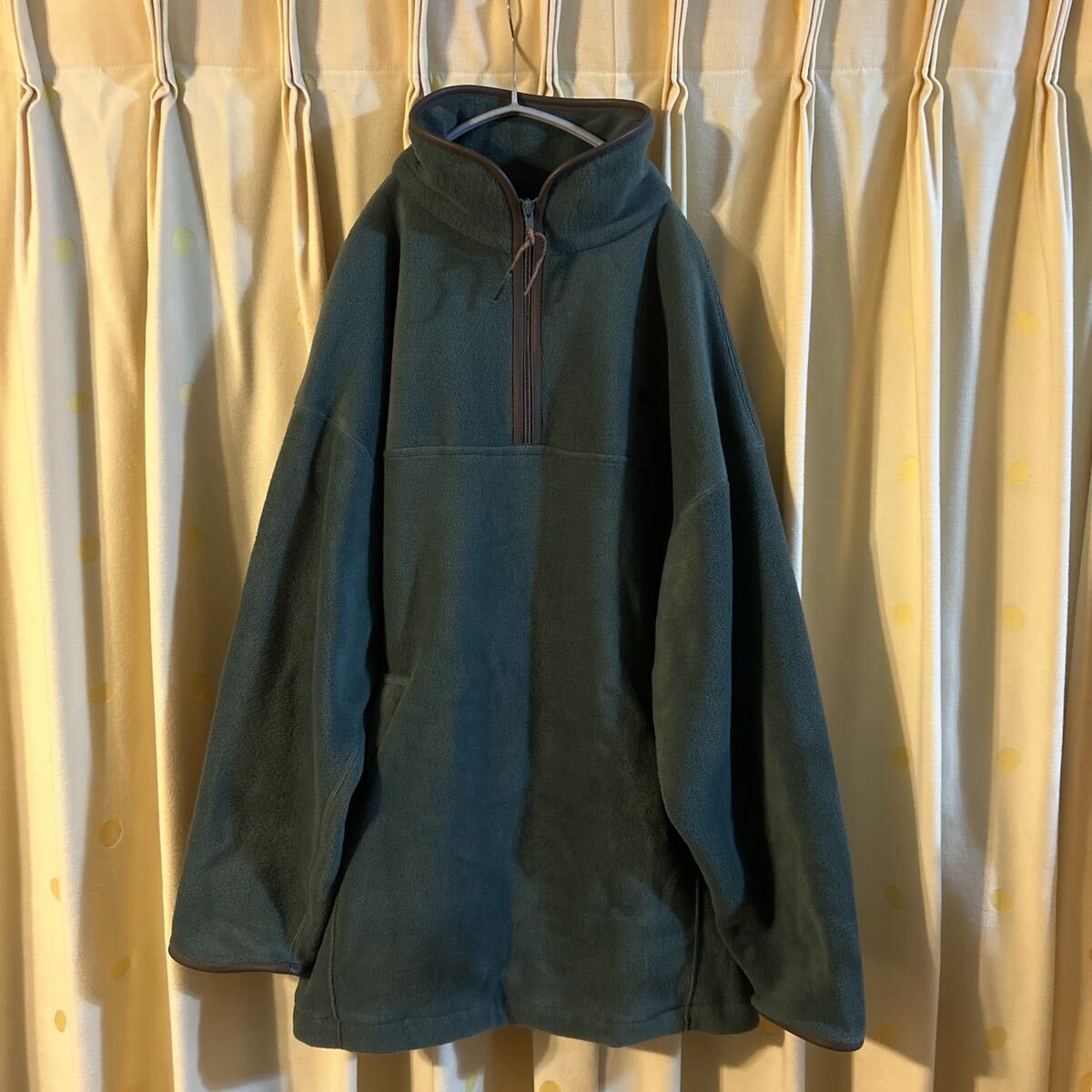 - 90S Timberland USA製 レザーパイピング ハーフジップ フリースジャケット サイズM グリーン 美品