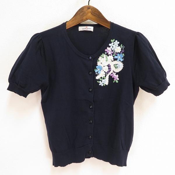 > #snc ギャラリービスコンティ GALLERY VISCONTI カーディガン 半袖 2 紺 ネイビー 花刺繍 パール レディース [913113] k01